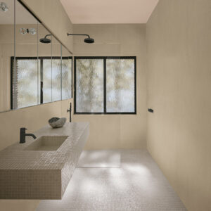 Differenti formati e superfici per offrire continuità tra pavimento e rivestimento indoor, che si combinano coerentemente con gli spazi outdoor.